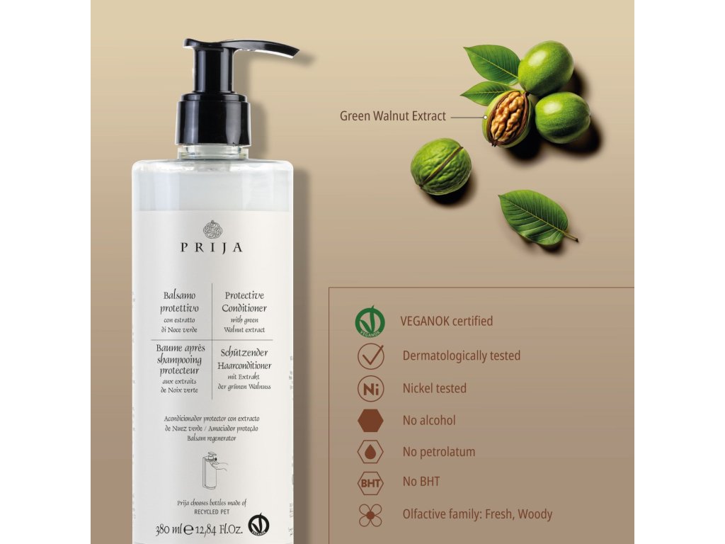Krémes balzsam zöld dió kivonattal, minden hajtípusra alkalmas. Védő és kondicionáló hatással van a hajra.