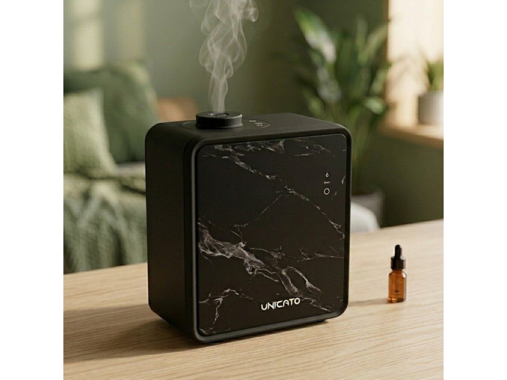 Ez a dizájnos MARBLE-M diffúzor gyönyörűen illeszkedik bármilyen belső térbe. A 1200 m²-es lefedettség ideális nagy terekhez, például hotel recepciókhoz, showroomokhoz, bevásárlóközpontokhoz, üzletekhez stb. A diffúzor illóolajokat juttat a levegőbe, ezáltal javítja a helyiség illatát, valamint hatással van a hangulatra és az egészségre.
