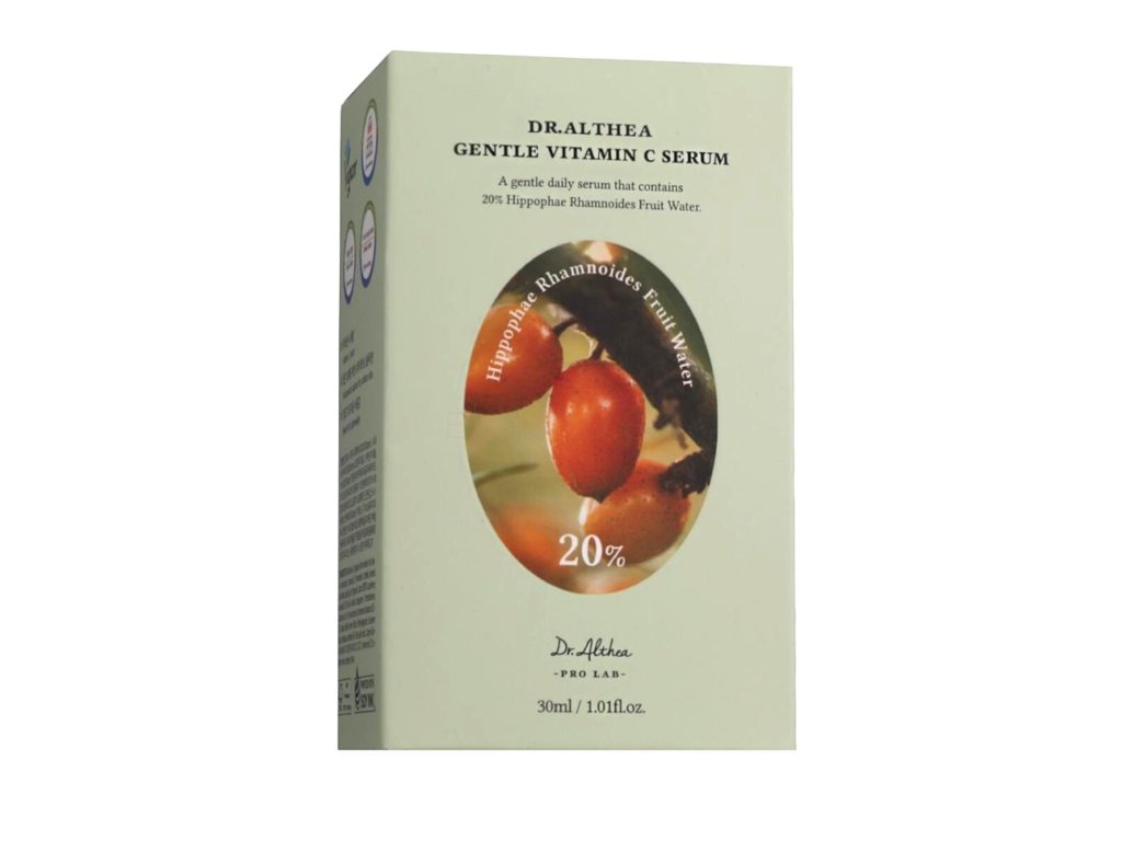 A Dr. Althea Gyengéd C-vitaminos szérum eltünteti a fakó és egyenetlen bőrtónust, gyengéden halványítja az aknés hegeket és a pangó pigmentfoltokat. Javítja az arcszínt, egészséges ragyogást kölcsönöz neki. Optimalizálja a bőr védőfunkcióit és erősíti a helyi immunitást. Szabályozza a faggyútermelést, elnyomja a gyulladást és csökkenti a pattanások kockázatát. Gyengéden halványítja a gyulladás utáni pigmentációt és kiegyenlíti a bőrtónust.