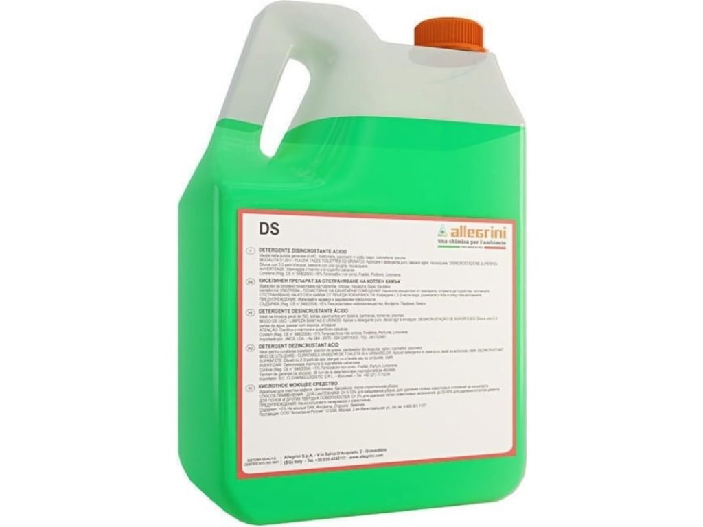 A DS egy savas vízkőoldó szaniter használatra, ideális WC-k, fürdőszobák, medence környéki és mindenféle csempézett felület, például kőagyag, kerámia és terrakotta általános tisztítására. Eltávolítja a rozsdát, a foltokat és a lerakódásokat a WC-csészékből, és maradványmentesen hagyja a felületeket. Könnyedén eltávolítja a habarcs- és betonmaradványokat.