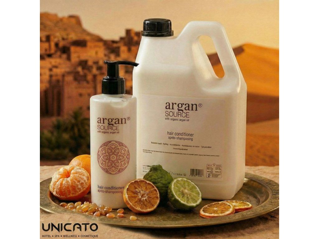 ARGAN SOURCE hotelkozmetikumok, amelyek organikus argánolajat tartalmaznak. Egy szépségelixír, amely antioxidánsainak köszönhetően kötelező darab lett a kozmetikumokban. Emellett puhító és hidratáló hatással is rendelkezik. Az elbűvölő illat és az elegáns szatén dizájn Marokkó hangulatába repíti vendégeidet. A sivatagi arany ihlette kifinomult minőség.