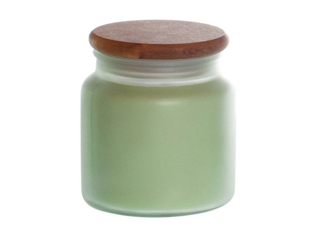 Üvegtartály "fagyasztott" üveggel és fa fedéllel