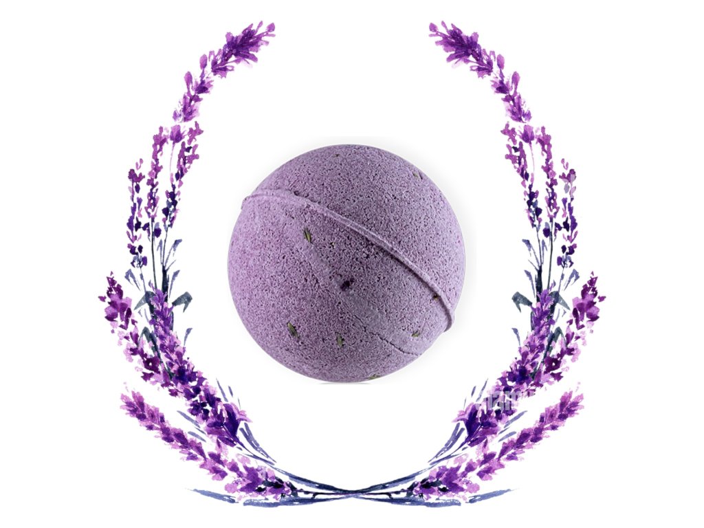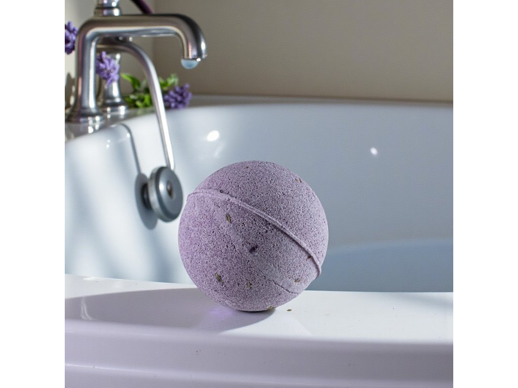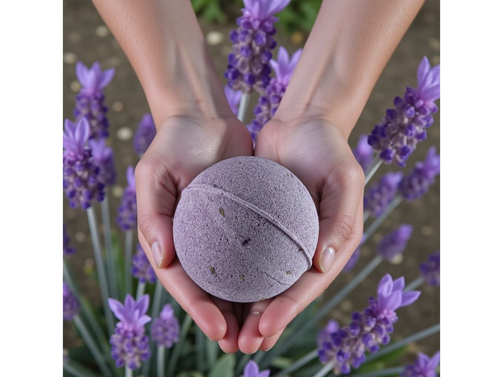100 % tisztaságú levendula illóolajból és levendulavirágból készült fürdőbomba a levendula nyugtató hatásáért fürdés közben.