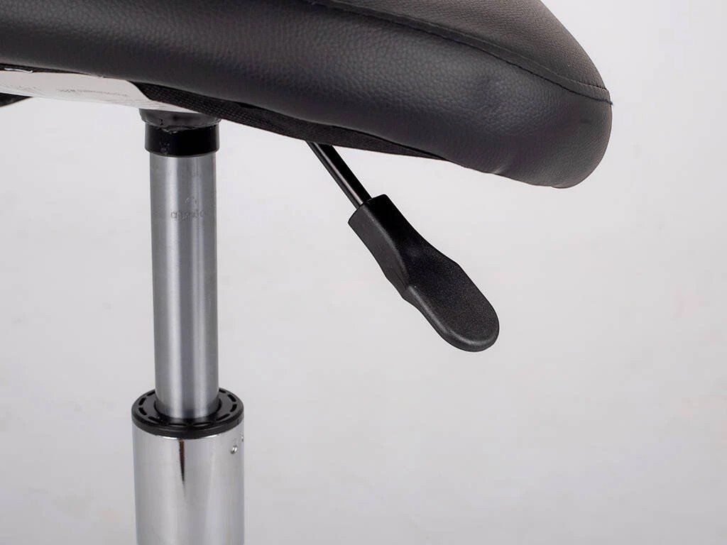Ergonomikus forgószék profilozott nyereg alakú üléssel, kényelmes magasságállítás gázrugó és kerekek segítségével. A nyeregszék optimális testsúlyeloszlást biztosít, és megkönnyíti a természetes ülési pozíció felvételét. Az ötkarú, csillogó króm váz eleganciát kölcsönöz bármilyen belső térnek. Masszázsszalonok, fizioterápia, szépségszalonok és fodrászatok számára tervezve.