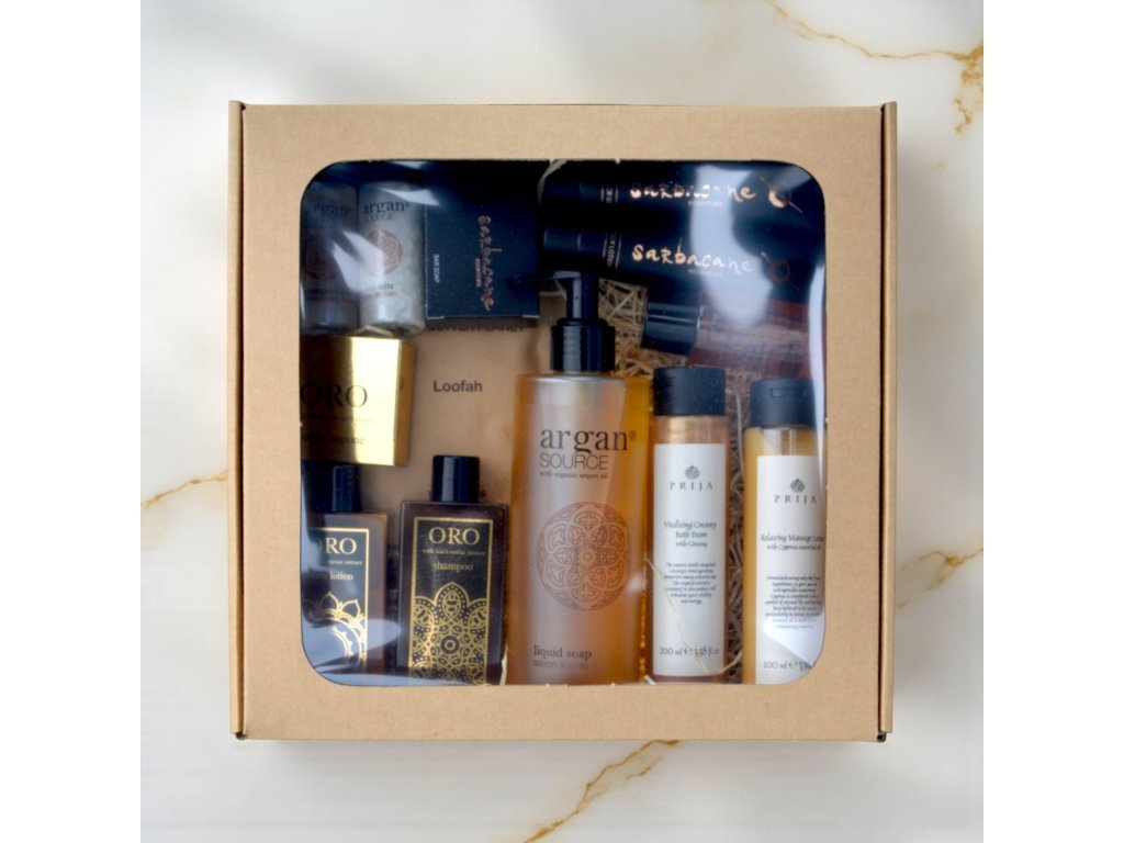 Kozmetikumaink tökéletes választékát kínáljuk - LUX AJÁNDÉKSZETT. Egy átlátszó fedelű dobozban, fa hullámmintával díszített, gondosan válogatott, márkás kozmetikai termékeinket kínáljuk. Ez egy kis ízelítő, amely luxus és felejthetetlen ajándék érzetét kelti. A csomag az ARGAN SOURCE, SARBACANE, ORO és PRIJA termékcsaládok kozmetikumait tartalmazza, kiegészítve LUFA-val a bőr masszázsáért és hámlasztásáért.