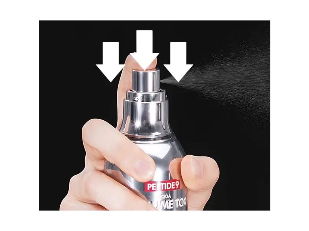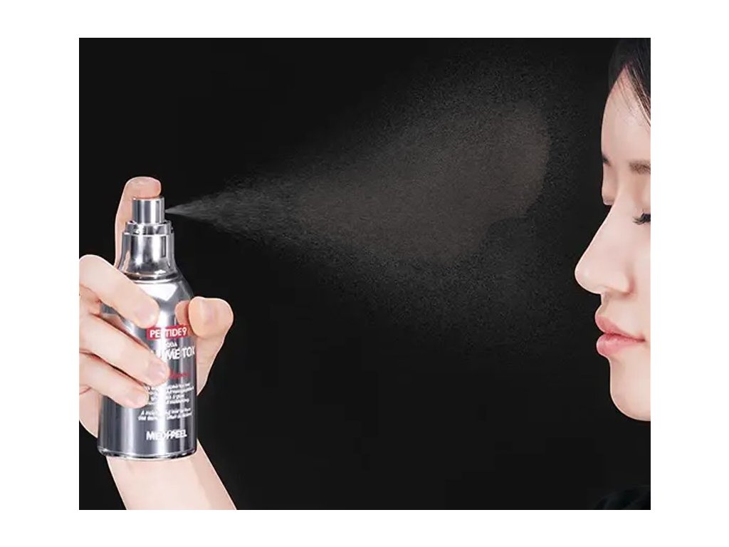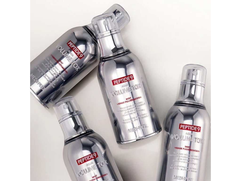 MEDI-PEEL Peptide 9 Aqua Volume Tox Mist PRO – Lifting és hidratáló arcpermet, amely lifting hatású, segít kisimítani a ráncokat, nyugtatja és intenzíven hidratálja a bőrt a nap folyamán, ugyanakkor fixálja a sminket. Feszesíti az arc kontúrjait, javítja a rugalmasságát, és friss, telt megjelenést kölcsönöz a bőrnek.