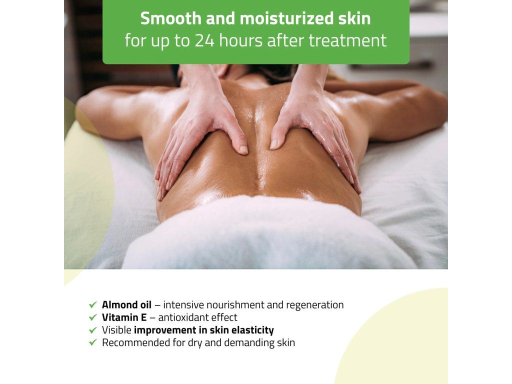 Relaxáló masszázsolaj természetes édesmandula-olajjal és E-vitaminnal. A jázmin illata a vanília meleg jegyével kombinálva körülölel, nyugtat és kellemes hangulatot teremt a kezelés során. Ideális professzionális masszázsokhoz és otthoni rituálékhoz.