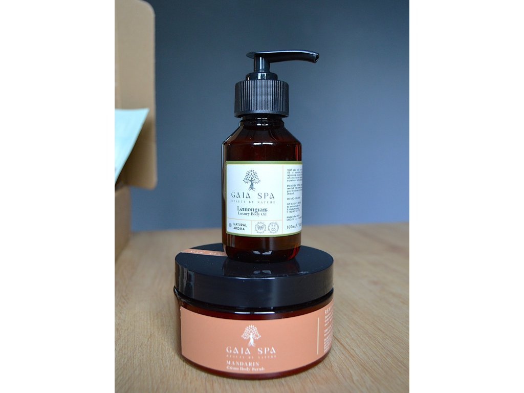 GAIA SPA - A teljes termékcsalád kifejezetten gyógyfürdők, wellness központok és masszázslétesítmények számára készült, ahol egyedülálló, pihentető élményt kínálnak, amelyet mostantól otthon is élvezhetsz. Természetes és bio összetevőkből készült, amelyek nemcsak a tested, hanem a lelked számára is a legjobb ápolást biztosítják. MI KIVÁLASZTJUK NEKED: Testmasszázsolaj 100ml, Testradír 200ml.