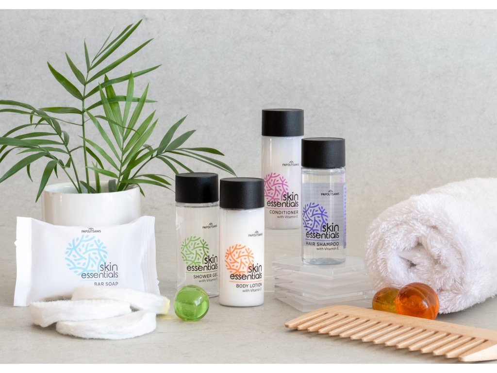 Egyedülálló hidratáló, antioxidáns és nyugtató tulajdonságaival semmi sem lehet fontosabb az erős haj és az egészséges bőr számára, mint az E-vitamin. A görög Papoutsanis cég E-vitaminnal dúsított SKIN ESSENTIALS kollekciója teljesen jótékony élményt nyújt a bőrnek és a hajnak! A Skin Essentials kiváló minőségű formulái a pézsmapúder illatával, valamint az alma, az ámbra és a jázmin jegyeivel felfrissülést ígérnek testének és lelkének! Felfrissített, modern dizájnnal és környezetbarát csomagolási lehetőségekkel!