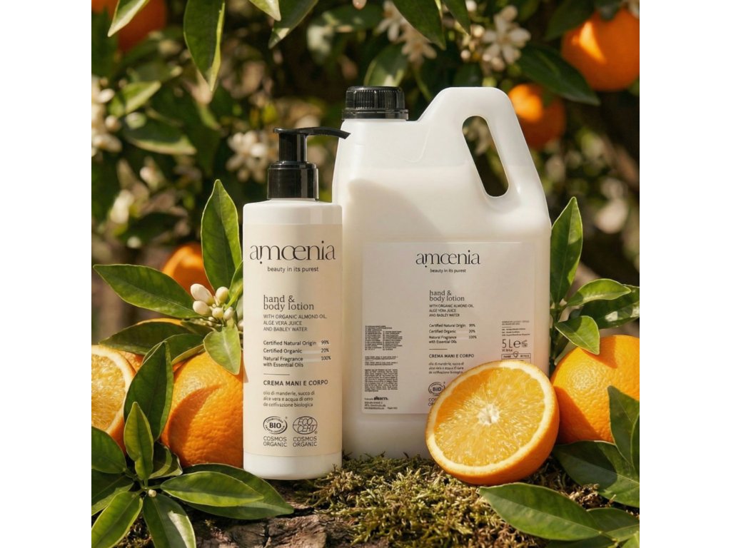 Az 5L AMOENIA testápoló krém (kannizster) biogazdálkodásból származó összetevőkkel, például mandulaolajjal, aloe vera levével és árpavízzel gazdagítva a táplált, bársonyos és illatos bőrért. Finom, 100%-ban természetes illata az értékes illóolajok harmóniája, amely a tiszta természet ölelésében veszi körül az érzékeket.