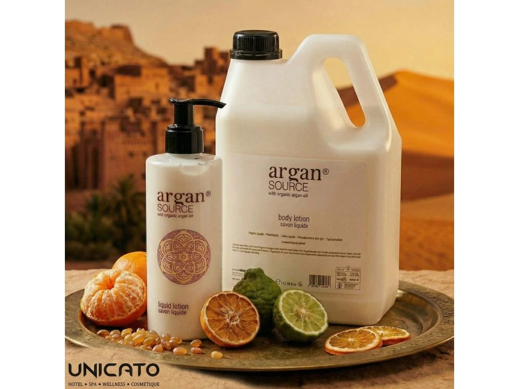 Az Argan Source egy kozmetikai termékcsalád, amely tartalmazza a bio argánolaj minden előnyét, egy olyan értékes összetevőét, amely antioxidáns, lágyító és hidratáló tulajdonságainak köszönhetően képes táplálni és jólétet adni a bőrnek. Az Argan Source egy olyan kollekció, amely melegítő és beburkoló esztétikájával a vendégek számára intenzív és pihentető wellness-élményt nyújt, amelyet a bergamott és a mandarin frissességét a gyöngyvirág édességével ötvöző kifinomult illat tesz még egyedibbé. völgy, bazsarózsa és rózsa. Az illatélményt a szantálfa, az ámbra és a pézsma beburkoló jegyei teszik teljessé, amelyek egy csipetnyi titokzatosságot és bájt adnak az illat eleganciájához.